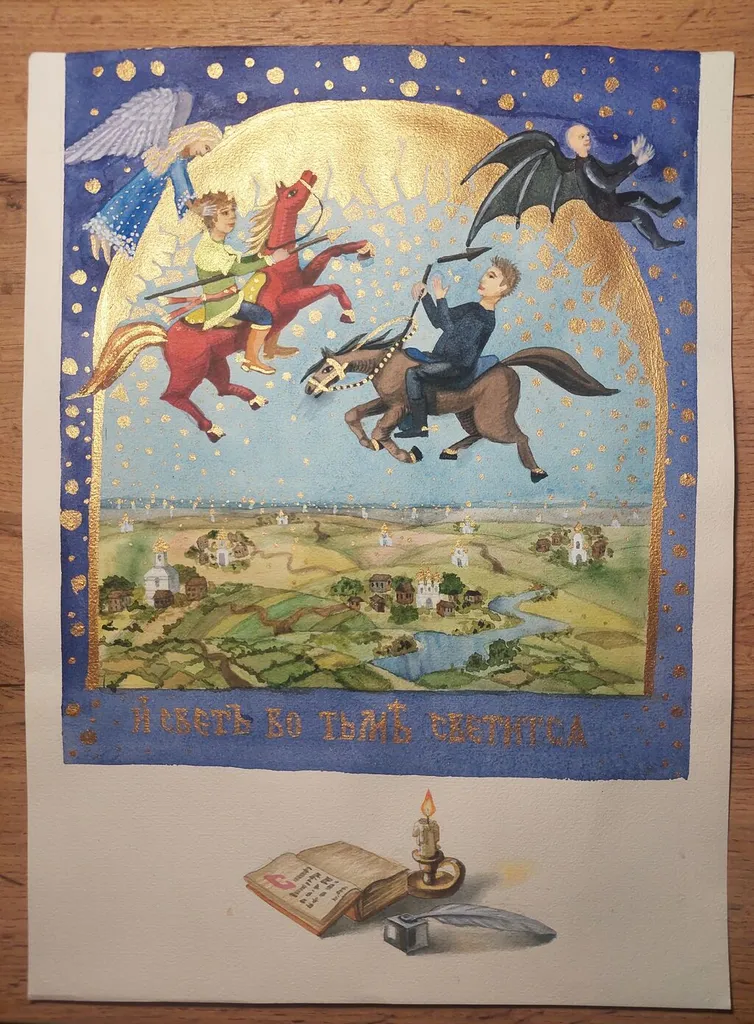 Николаенко Мария, 13 лет. В небе над храмом МУДО «Купавинская детская школа искусств», МО, Богородский городской округ, г. Старая Купавна |