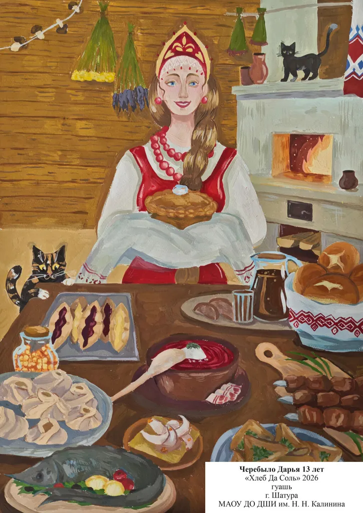Черебыло Дарья, 13 лет. Хлеб да соль МАОУ ДО «ДШИ им. Н.Н. Калинина» МО, муниципальный округ Шатура, г. Шатура |