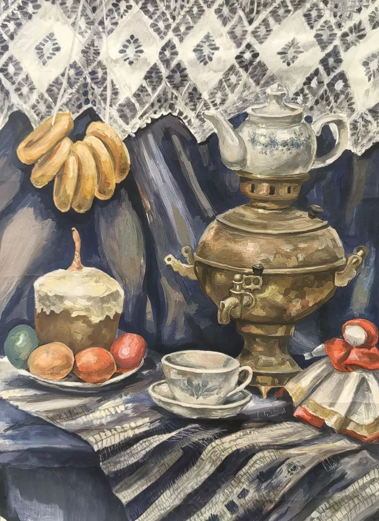 Дьякова Мария, 14 лет. Натюрморт в русском стиле МБУДО «Детская школа искусств № 6», МО, Городской округ Балашиха, г. Балашиха |