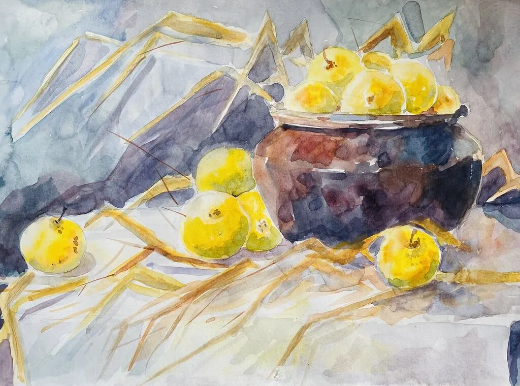 Гнусова Светлана Сергеевна. «Антоновские яблоки» по произведению И.А.Бунина 2026 г. ФГКУК ГДО «Реутово» изостудия «Акварелька» |