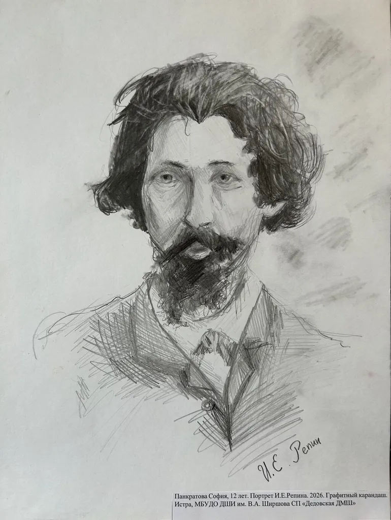 Панкратова София, 12 лет. Портрет И.Е. Репина МБУДО «Детская школа искусств имени В.А.Ширшова» сп «Дедовская ДМШ» МО, муниципальный округ Истра, г. Дедовск |