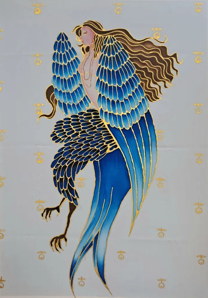 Завражнова Ольга, 13 лет. Сирин-птица. Батик МБУДО «Пушкинская детская художественная школа» МО, Городской округ Пушкинский, г. Пушкино |